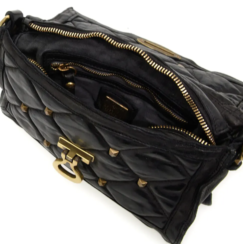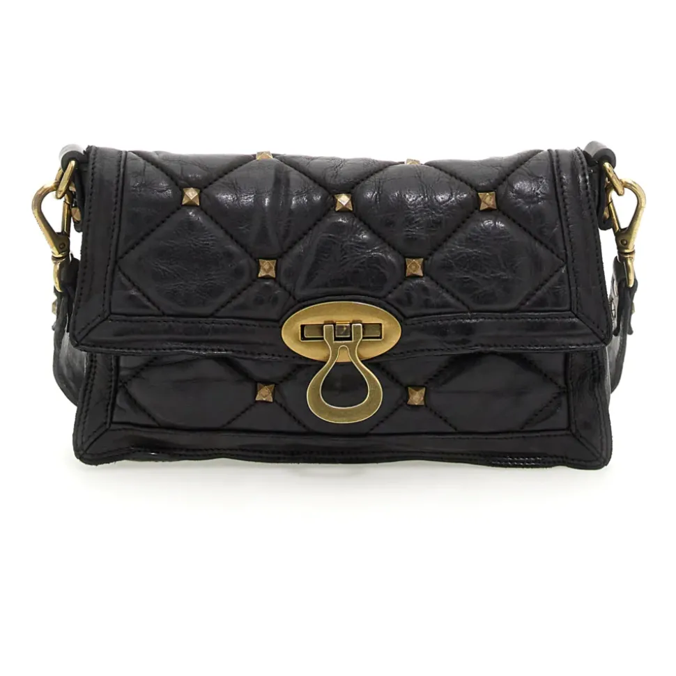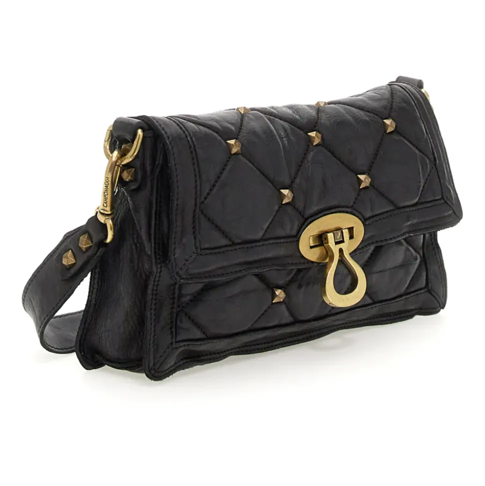 Shoulder bag Amùr in black quilted leather with studs