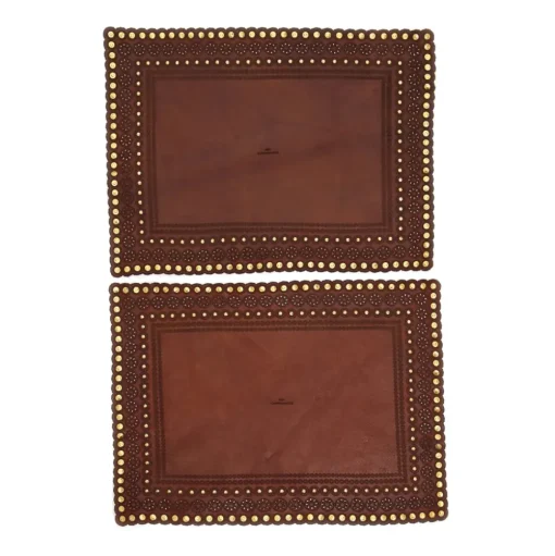 A finely decorated placemat in genuine leather, dedicated to those who enjoy the art of receiving with elegance.