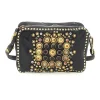 Ribes handbag in black garment-dyed cowhide leather with rhinestones